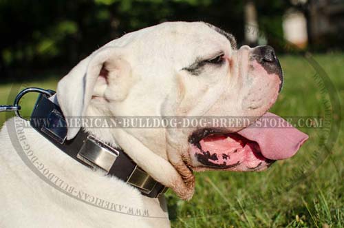 Get this Leather Collar with Decorated Large Plates to walk your American Bulldog in style each day.